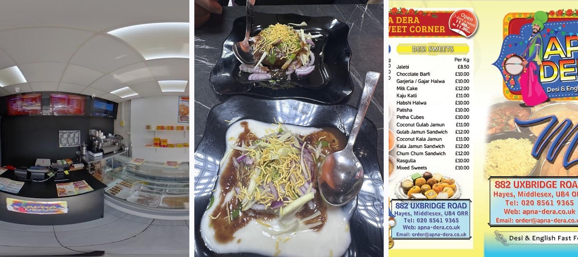 Apna Dera is a delightful traditional Indian takeaway nestled in the heart of Hayes, offering an exquisite menu brimming with unique and authentic dishes. Committed to quality, we use only the finest herbs and spices, ensuring all meals are free from artificial colors, additives, and preservatives. Our talented chefs blend classic cooking methods with a modern twist, delivering fresh flavors and rich aromas that enliven your palate. Whether you're stopping in for a quick takeaway or enjoying a leisurely meal, Apna Dera promises a casual, family-friendly atmosphere with an array of vegetarian and halal options. Join us for a taste of true Indian culinary artistry!Customers rave about the chole bhature, often calling it among the best in London, with authentic flavors reminiscent of India. The pani puri and aloo tikki chaat stand out for their refreshing taste, making them must-tries for any chaat lover. The casual environment fosters a warm, welcoming feel, perfect for family gatherings or solo meals. Many also appreciate the reasonable prices, with most dishes falling between £1 and £10, allowing for hearty meals without breaking the bank. Additionally, Apna Dera's commitment to using fresh ingredients without preservatives resonates well with health-conscious diners. The attentive service, with friendly staff like Zaheer Abbas, has become a highlight as customers feel well cared for during their visits.